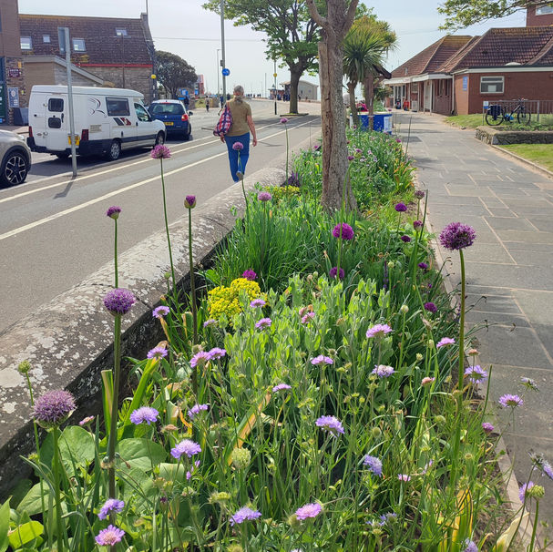 Established in spring 2023, this public realm scheme runs the length of Exmouth Esplanade. It has been designed to tolerate the harsh conditions of the seafront location, such as drought, salt spray and high winds. The dynamic nature of the scheme provides dramatic new experiences for visitors and residents throughout the year. The forms, textures and colour schemes evoke a powerful sense of place within the coastal setting. This project was undertaken whilst employed by East Devon District Council.